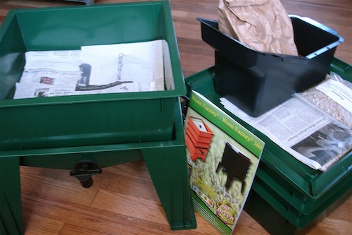 In an attempt to fill the farmer void of my away beau and also as an alternative to maintaining a compost heap (argh, all that blasted stirring – apparently I’m a pirate composter) I turned to vermicomposting: utilizing worms to convert my kitchen scraps into nutrient plentiful soil. I purchased a four tiered bin and starter kit from Eco-Outfitter called the Worm Factory 360 and had a local worm farm Already Been Chewed Composting set me up with a pound of Red Wigglers. The kit included a scraper, thermometer and hand rake, materials to start the moist bedding that worms love to braid through (coconut coir brick to mix with water, shredded newspaper and I added some dry leaves I found hiding out beneath our lilac bushes) plus plenty of instruction (in video form too!). Once my bag o’ worms was delivered, I prepared the bed with handfuls of on its way out food and eggshells in the corners, dumped the worms in the center, and covered the stew with three layers of soaked newspaper. According to the experts, it will take about 3 months of feeding the critters leftovers and fiber for the mix to transform into grade A topsoil for houseplants and garden plots. Also, worm castings can be used to make Worm Tea – an excellent nitrogen rich fertilizer – by diluting the sifted vermicompost in a permeable bag with two day standing water, adding molasses, and letting it aerate for 24 hours using an aquarium pump. Lifting your pinky while you spray your plants into restorative bliss is optional…unless you’re English, then you’re probably forced by properness to do so. Ahoy, landlubbers!